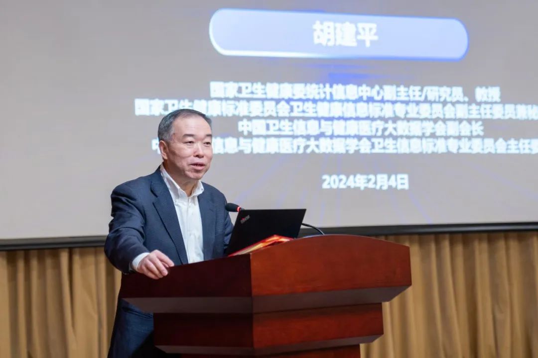国家卫健委统计信息中心副主任胡建平作《医疗健康信息互联互通标准与技术体系建设》专题报告