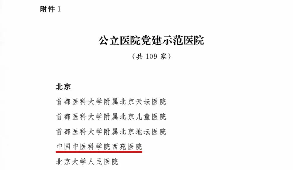 近日,经国家卫生健康委党组同意,全国医院党建工作指导委员会印发《关于培育选树公立医院党建示范医院以及临床科室标杆党支部工作情况的通报》。经过逐级评选审批,西苑医院获评“全国公立医院党建示范医院”。