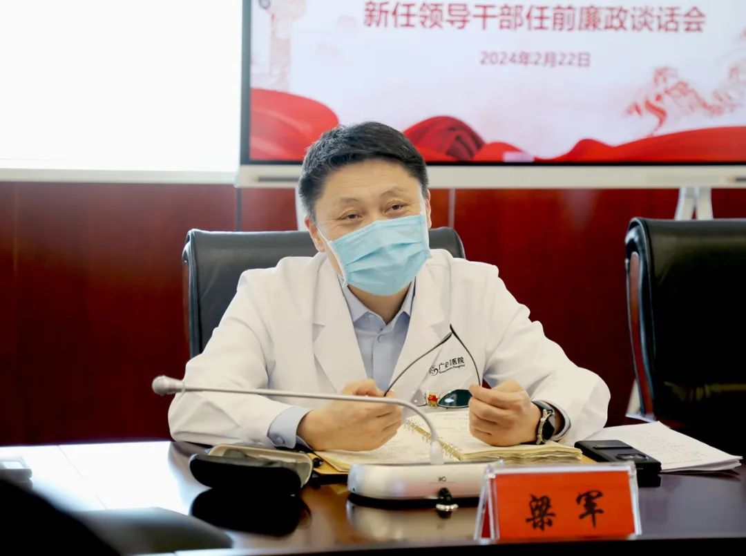 刘震院长代表院党委向新任职干部表示祝贺,提出三点要求,一是要把准政治方向,坚守政治立场。围绕医院重点工作任务扎实推动业务工作开展,始终与医院保持步调一致;二是要树立“共干一番事业”的胸怀格局,锤炼科室团结的坚强“内核”;三是要坚持严于律己,筑牢新风正气。不断提高对党的纪律和规矩的认识,始终心有所畏、言有所戒、行有所止。把全部精力用在干事创新上,为医院的高质量发展做出更大贡献。
