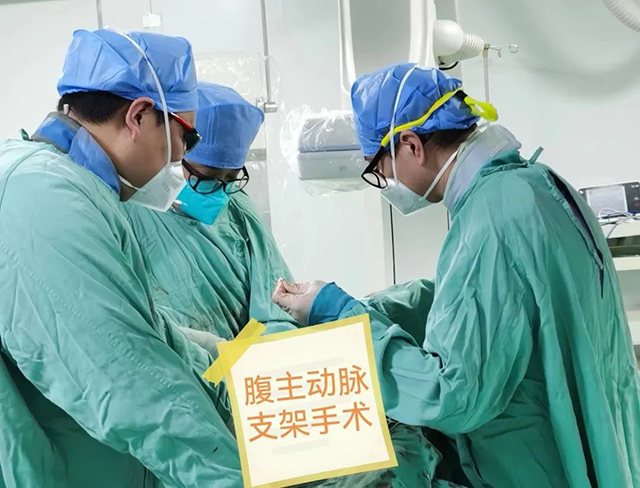 与家属充分沟通后,姚志敏等人当天晚上紧急为患者进行腹主动脉瘤支架隔绝治疗。由于手术难度很大,历经3个多小时的奋战才将患者体内那颗即将引爆的“定时炸弹”拆除。深夜,院领导打来电话关切询问患者情况,叮嘱做好术后监护注意事项。医护人员牵挂的心也终于放下了,患者和家属能过个平安年了!