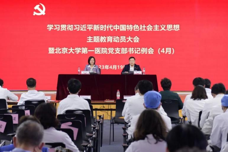 医院党委根据党中央统一部署,按照北京大学、医学部党委指导,把开展主题教育作为事关全局的大事紧抓实抓,坚决贯彻落实习近平总书记关于主题教育的重要讲话和重要指示批示精神,召开工作会议深入动员部署,把加强党的创新理论武装作为重中之重,突出领学促学、深学研学,提振发展信心。党委累计举办11次“学思想读书会”,党委书记和院长领学领读原著、细学原文、深悟原理,主题教育领导小组成员以及党务部门负责人参加读书会,推动了主题教育走深走实,为凝心聚力推动医院高质量发展贡献力量。各党总支和党支部召开专题学习会议,形式多样、联学联动。医院党委赴浙江湖州举办党支部书记及骨干培训班,领悟“绿水青山就是金山银山”理念,创新以文化为引领的党建新模式;与国家自然科学基金委员会开展联合主题党日活动,以高质量科研引领公立医院高质量发展。