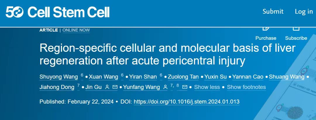该研究工作以Region-specific cellular and molecular basis of liver regeneration after acute pericentral injury(肝脏急性中央静脉区损伤后区域性肝再生的分子和细胞机制)为题在线发表在国际干细胞顶级期刊《细胞干细胞》(Cell Stem Cell)上,由北京清华长庚医院王韫芳教授和董家鸿院士团队与清华大学自动化系古槿副教授团队合作完成。解放军总医院第八医学中心副研究员王术勇,北京清华长庚医院肝胆胰实验室科研助理王璇以及清华大学自动化系博士研究生单怡然为本文共同第一作者。北京清华长庚医院肝胆胰实验室技术员宿钰鑫,博士研究生曹彦楠和王爽亦为本研究做出贡献。研究得到国家自然科学基金委“组织器官再生修复的信息解码及有序调控”重大研究计划重点项目等基金支持。