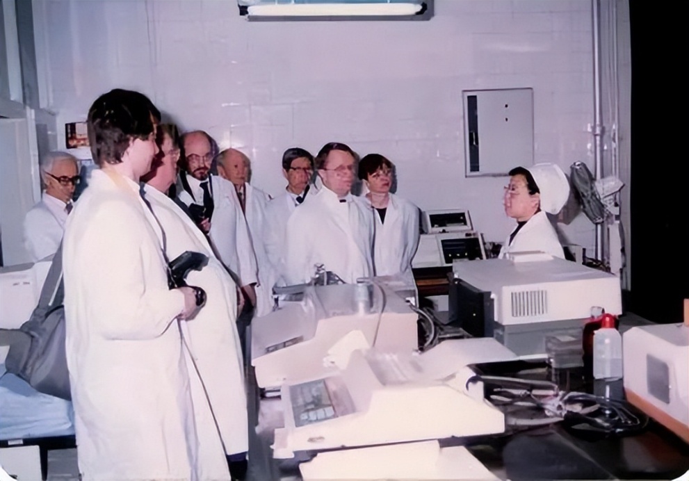 1991年,波兰卫生部长参观药剂科仪器分析室、制剂室。