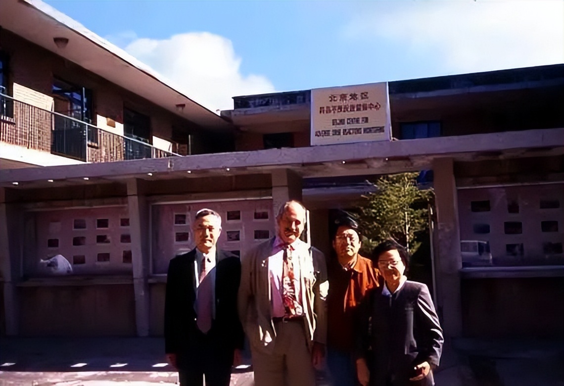 WHO的ADR监测官员Ralph Edward访问北京地区药品不良反应监测中心,中心主任程经华邀请协和医院药剂科主任李大魁与陆丽珠(右1)参加接待。