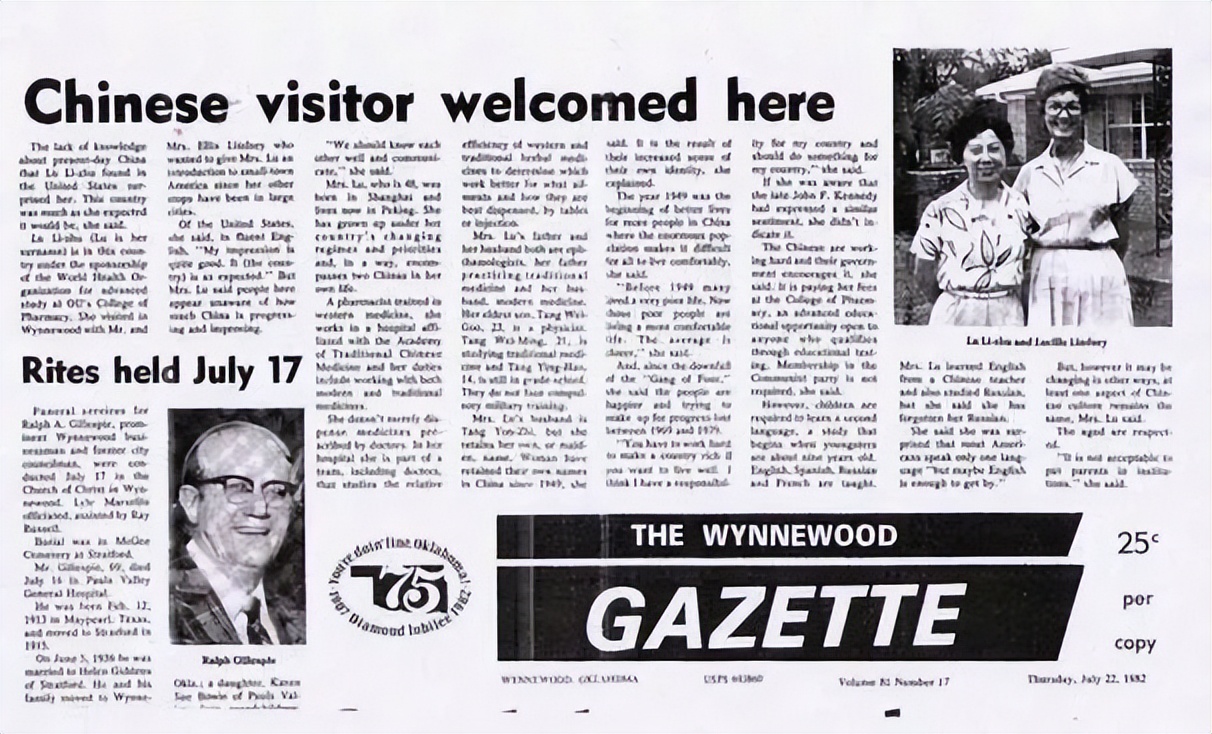 在世卫组织访问学者期间,受美国友人邀请访问Wynnewood时记者采访报道。