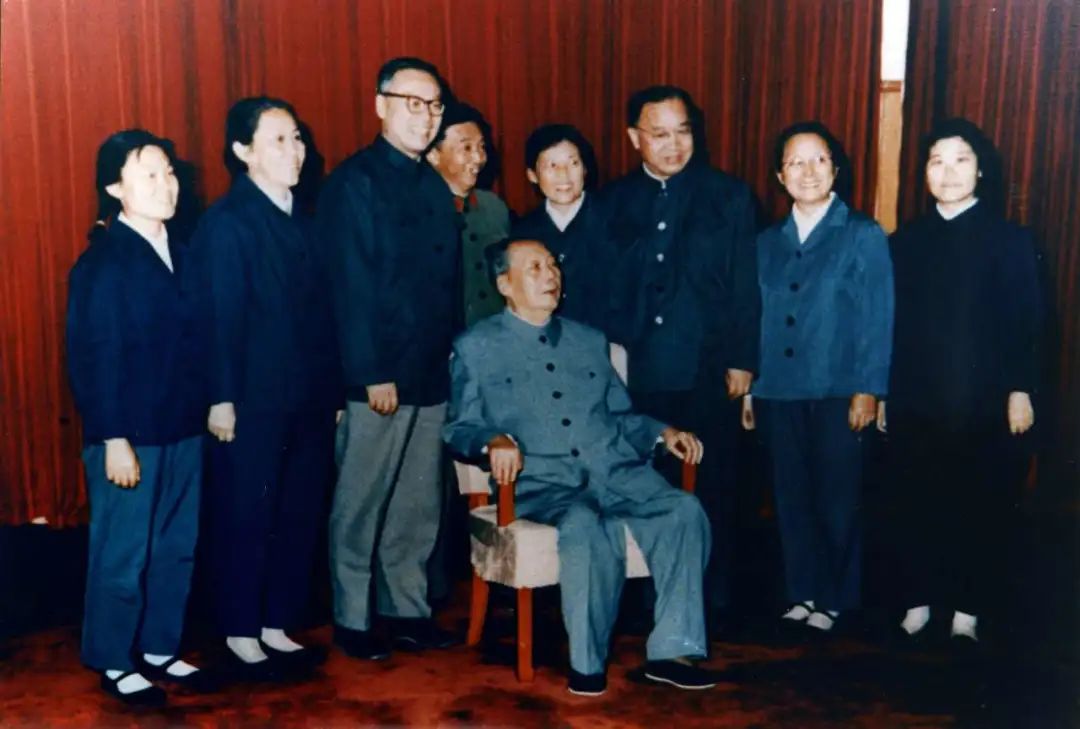 1975年,接受白内障针拨术后的毛泽东与医疗组成员合影。左三为唐由之。