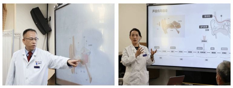 在专题讲座中,耳鼻喉科潘滔主任医师深入浅出地介绍了耳聋的分类和治疗方法,张珂副主任医师聚焦单侧耳聋的诊治,详细介绍了单侧耳聋对个人和社会的影响。