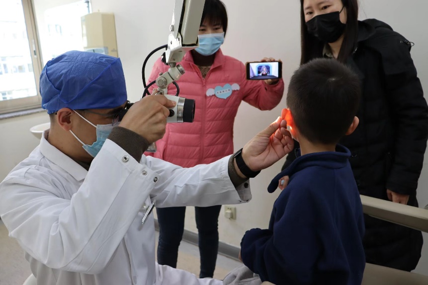 李涛为北医幼儿园小朋友进行耳科体检