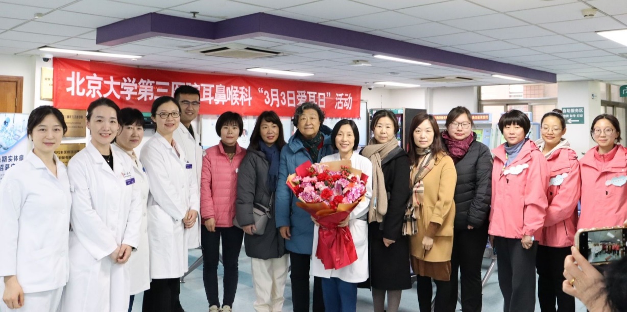 北医幼儿园教师、保健医为北京大学第三医院耳鼻喉科义诊团队献花
