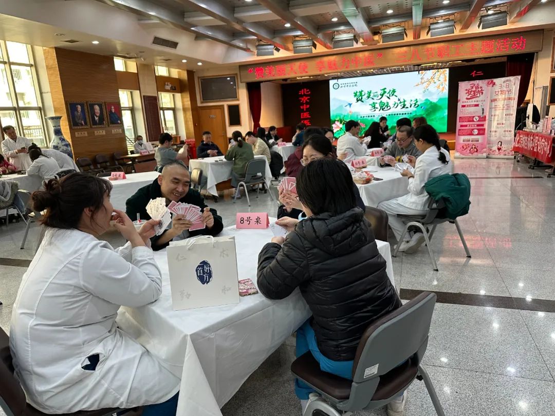 北京中医医院女职工占总人数的近70%,撑起了医院的“大半边天”。为缓解女职工日常工作生活压力,增进彼此交流,医院连续数年组织三八妇女节主题活动,让职工从繁忙的工作中抽身出来,与同事们围坐一起,听讲座、做手工,舒缓身心压力,也增进了同事之间的交流,为实现2024年“凝心聚力 心怀远方 实干笃行 久久为功 勇立潮头”的医院发展目标加油助力,营造良好氛围。