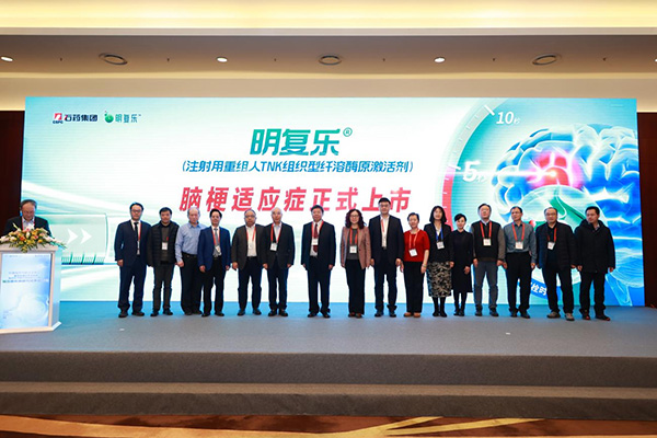 石药集团明复乐药业(广州)有限公司董事长杨琴女士对“TRACE系列研究药物的研发转化历程”进行专题报告。第三代溶血栓新药明复乐是国内首个CHO表达的重组t-PA大分子新药,其成功面世历经15年研发,填补多项空白,实现技术转化。王拥军教授,蔡东晨先生与各位专家代表共同点亮大屏手印,见证石药集团明复乐脑梗适应症正式上市!