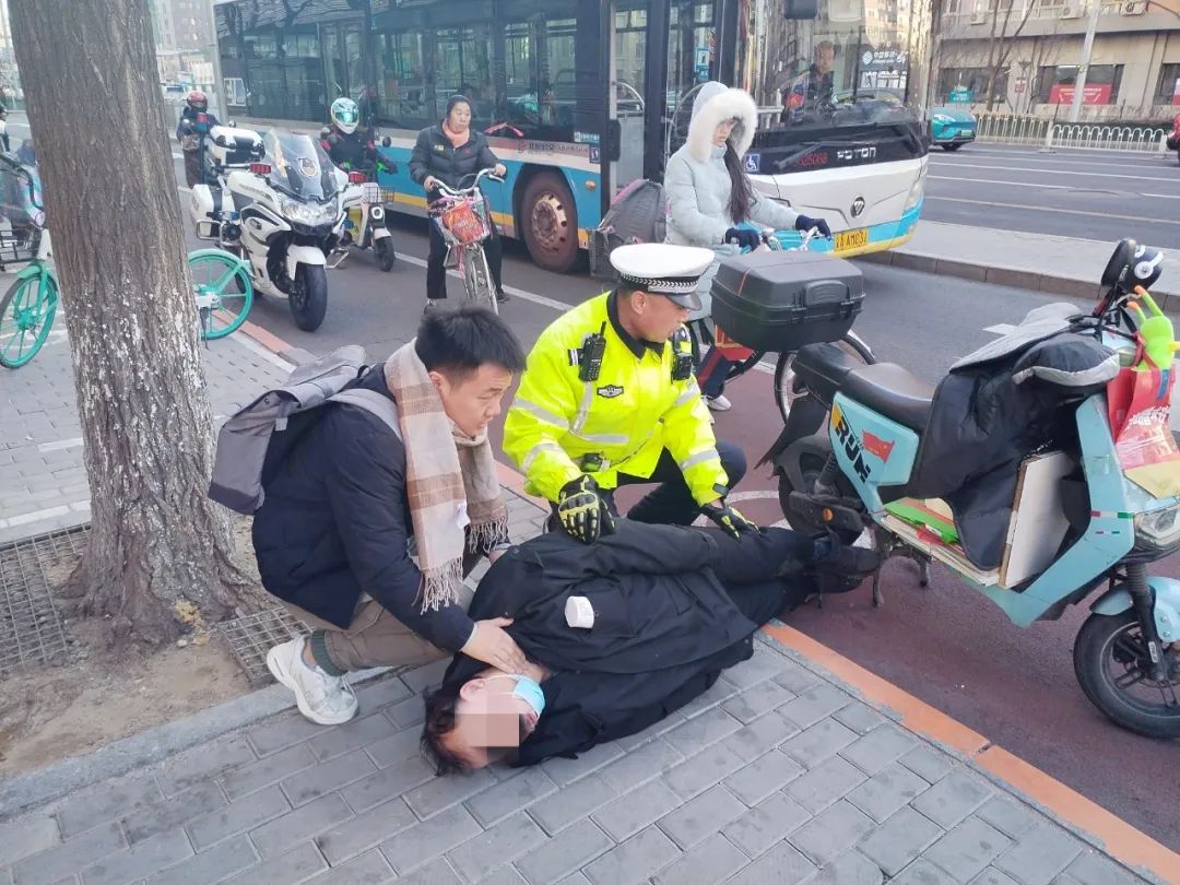 当时,他骑车经过安定门外大街与青年沟路口交叉口等红灯时,突然听到“扑通”一声,身后一位外卖小哥连人带车倒在地上。他连忙下车一个箭步冲上前去,发现外卖小哥呼之不应,颈动脉搏动良好,口中有分泌物渗出、四肢抽搐……初步判断可能是癫痫发作,马上拨打了120急救电话。