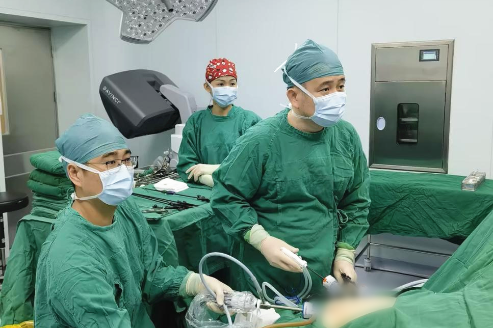 王鹏飞(右一)腹腔镜下手术取出竹签