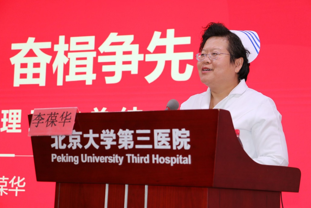 开幕式上,李蓉副院长代表院党政领导向护理团队表达了敬意,并在讲话中强调,2023年是北京大学第三医院建院65周年,在这一年,北京大学第三医院在保障医疗、护理质量的基础上,门急诊服务量、出院人次、手术量及平均住院日等指标又有了新的突破,这些突破的背后凝聚着护理团队的奋斗与智慧。李蓉副院长对护理工作在改造服务流程和提升护理质量等方面取得的诸多成绩表示祝贺,并对护理队伍如何紧跟国家政策和医院发展提出了新的要求。她指出,2024年是北京大学第三医院深化高质量发展的关键之年。全院护士要借助护理工作会的契机,围绕如何保证医疗质量、优化护理服务、提升患者就医体验等议题展开深入研讨。最后,李蓉副院长希望北京大学第三医院护理的高质量发展之路成为行业内的典范,成为行业学习的榜样。