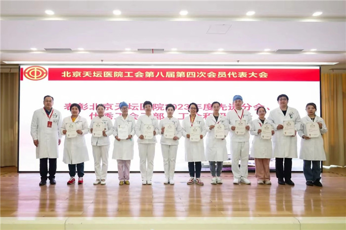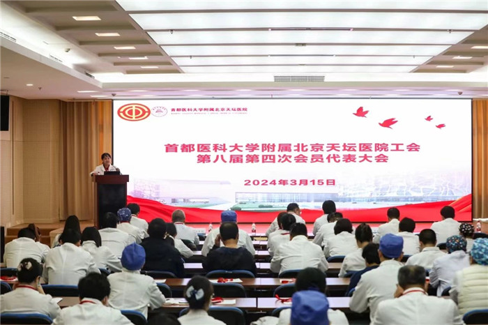 北京天坛医院工会第八届第四次会员代表大会于3月15日召开。大会听取2023年度工会各项工作报告,对先进分会、优秀工会干部和工会积极分子进行表彰,开展会员评议职工之家。大会由医院党委常委、工会主席徐燕玲主持。