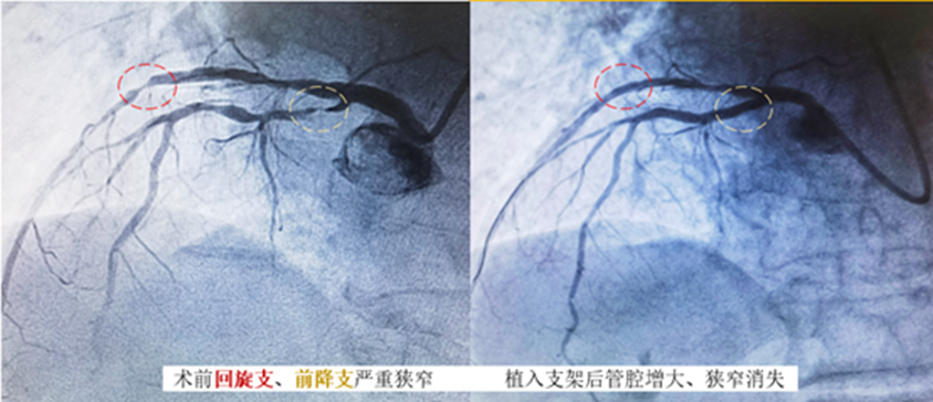 就在手术进行到关键时刻,患者突然胸痛加剧、情绪开始躁动,监测显示心率加快、血压升高,气氛立即紧张起来。此时苗立夫主任果断指示,扩张堵塞处,并快速植入支架。随着支架的成功植入和血流的恢复,患者的胸痛渐渐消失,生命体征也逐渐稳定下来。