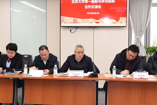 姜辉书记在总结讲话中对贵州茅台集团一行的到来表示热烈欢迎,并感谢贵州茅台集团对北大医院长期以来的信任。他表示,北大医院作为“国家队”医院,一直保持着高度的家国情怀和责任感。他鼓励双方要继续解放思想,发扬斗争精神,做到有胸怀、有格局、有眼界。同时,他呼吁要加强顶层谋划、高层推进、中层协作、底层服务,双方要拓展沟通渠道、建立交流机制、夯实合作根基、深化合作关系。为我院派驻专家提供更好保障的同时,促进国家优质医疗资源下沉,补齐当地医疗短板,努力提升医院知名度,为贵州茅台集团职工及仁怀百姓提供更便捷、更优质的医疗服务。