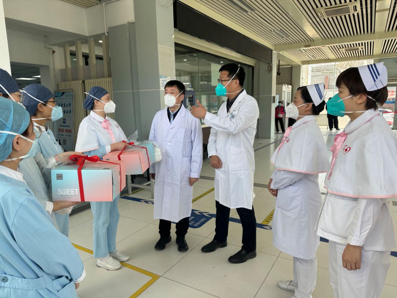 在这份守护健康的使命中,有前线医护人员的拼搏与付出,也有后方院领导的指引与关爱。3月22日上午,院领导及相关科室负责人手捧蛋糕和感谢信,向坚守在结核病防治前线的医护人员表达了诚挚的问候和美好的祝福。