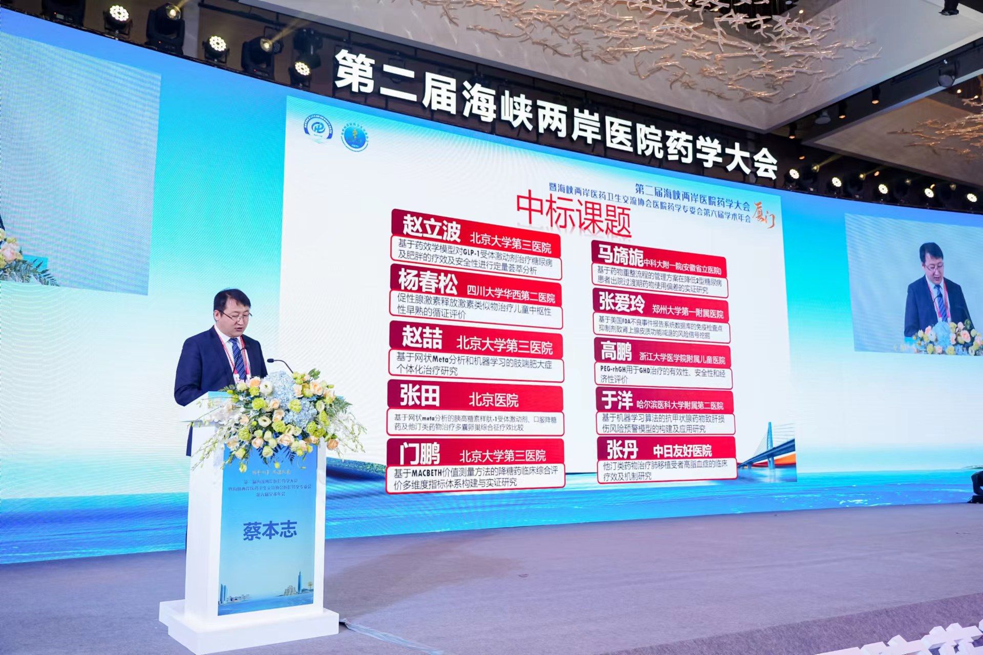 在项目发布环节,北京大学第三医院药学部赵立波教授申报的《基于药效学模型对GLP-1受体激动剂治疗糖尿病及肥胖的疗效及安全性进行定量荟萃分析》、赵喆主管药师申报的《基于网状Meta分析和机器学习的肢端肥大症个体化治疗研究》以及门鹏主管药师申报的《基于MACBETH价值测量方法的降糖药临床综合评价多维度指标体系构建与实证研究》,获得海峡优秀青年科研项目资助。在分论坛环节,赵立波代表获得资助药师进行项目分享。本次科研项目申报,共收到全国两岸四地青年药师提交的50多个项目标书,经过专家委员会盲审,共评出10项进行资助,北京大学第三医院为获得资助最多的医院。