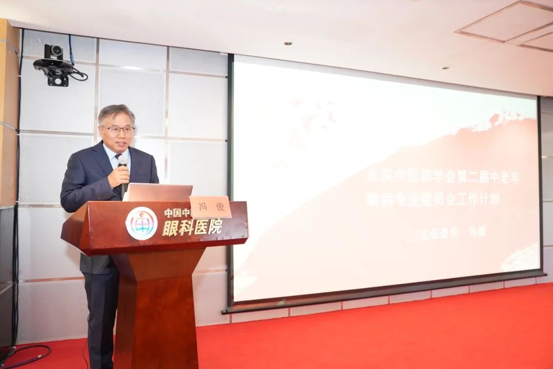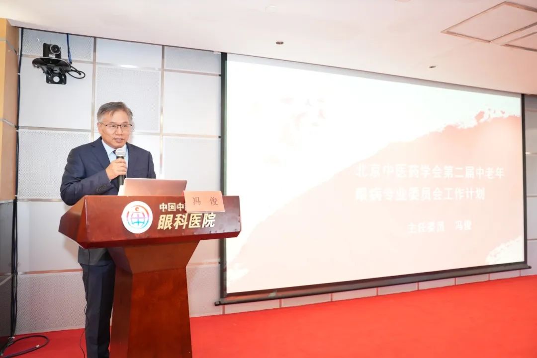 冯俊主任委员发表任职表态并介绍本届专业委员会工作计划,北京中医药学会中老年眼病专业委员会将在北京中医药学会屠志涛会长的领导下,在杨娜秘书长的指导下,依据学会章程和专业委员会管理办法,努力做好学术交流、科普及研究等工作;注重与多学科的交叉研究,探索总结中医药跨学科发展路径与方法,促进中老年眼病的防治研究;继续推广中老年眼病中西医结合防控体系,形成中老年眼病共病、慢性管理策略,完成具有北京特色能够引领全国的中老年眼病防治的专家共识及指南的起草与发布,进一步提升学术水平,促进学术交流。