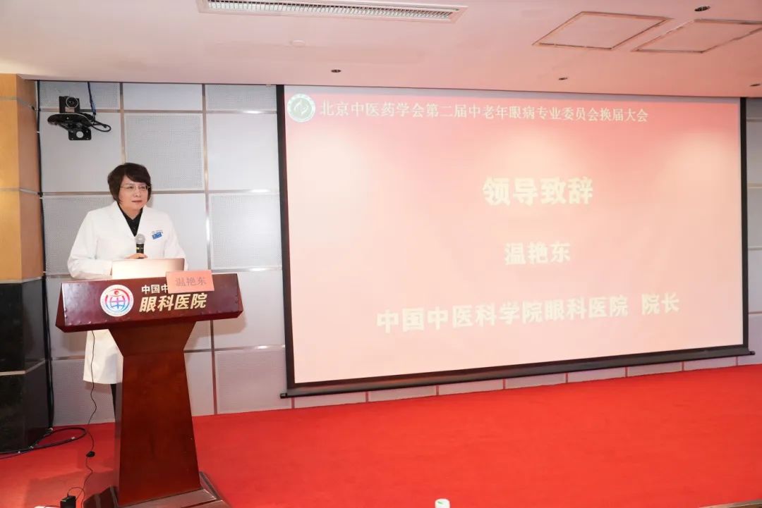 中国中医科学院眼科医院温艳东院长向北京中医药学会第二届中老年眼病专委会的顺利换届表示祝贺,作为主任委员单位和眼科专科医院,中国中医科学院眼科医院综合实力不断提升,在专科建设和学术影响方面屡创佳绩,将全力支持专委会工作,为北京中老年眼病防治工作的高质量发展做好支撑和保障。