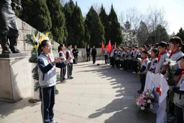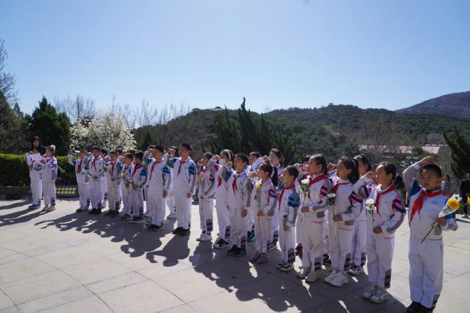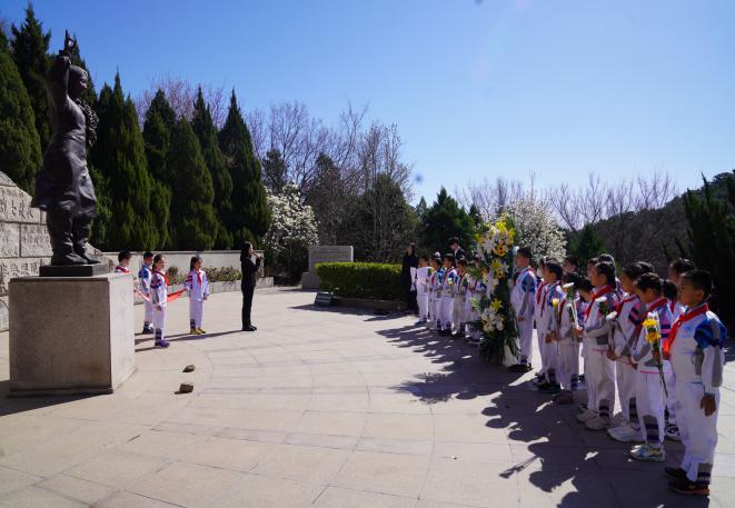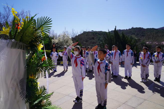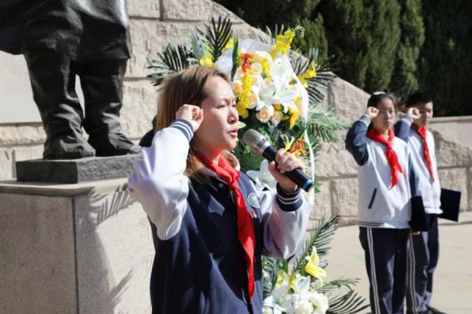 老师带领全体少先队员庄严呼号:“准备着,为共产主义事业而奋斗!”“时刻准备着!”铿锵有力的声音久久回荡在纪念坛上空,表达了新时代先锋少年继承先烈遗志的坚定决心。