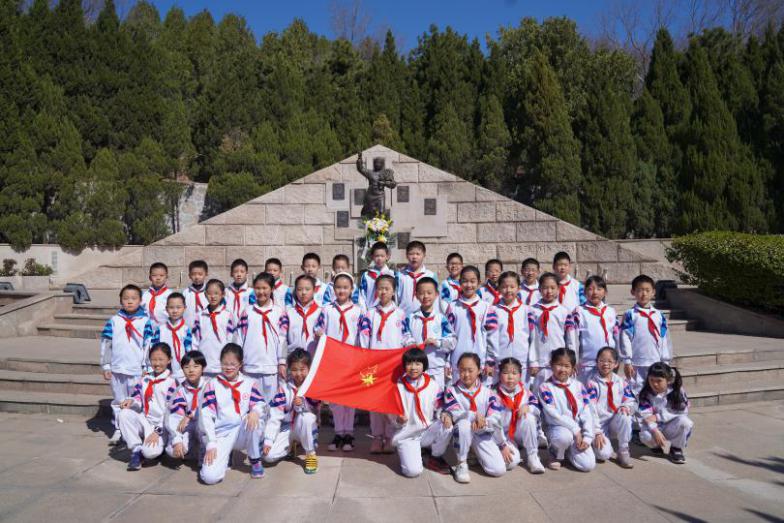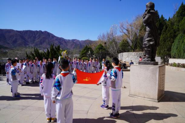 随后,大家前往“救死扶伤”纪念坛进行现场教学活动。鲜艳的队旗在旗手们的护卫下庄严入场,少先队员们齐唱中华人民共和国国歌和《我们是共产主义接班人》,嘹亮的歌声传递着少先队员朝气蓬勃、锐意进取的精神风貌。