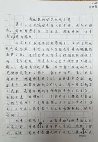今天和同学们一起来缅怀英雄,我深感要珍惜当下,感恩生活,更要铭记那些为我们付出过的人,学习他们面对困难和挑战时,能够坚定信念,勇往直前,为人民付出的精神。