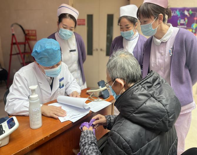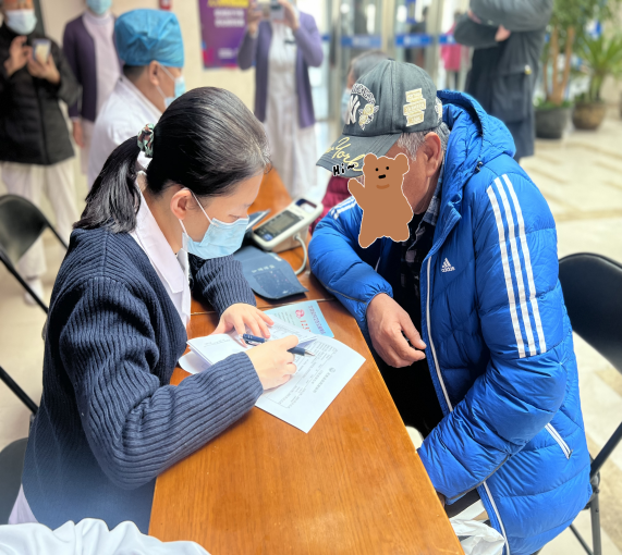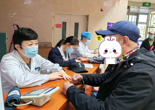 王铠主任医师为患者测量血压,耐心了解患者病史,并作出解答