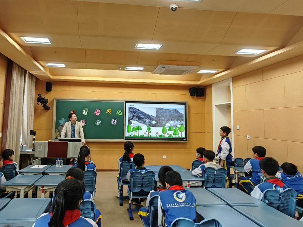 在本次讲座高老师通过展示了一系列大家身边就能见到的中药植物照片,引起了同学们的浓厚兴趣。如现在这个季节正在开花的连翘,山桃,紫花地丁……等等。高老师授课中结合小学语文课文《植物妈妈有办法》这篇文章,详细描述了这些中药植物的生长环境、药用功效以及在日常生活中的应用。高老师告诉同学们,这些看似普通的植物,其实都蕴含着丰富的药用价值。