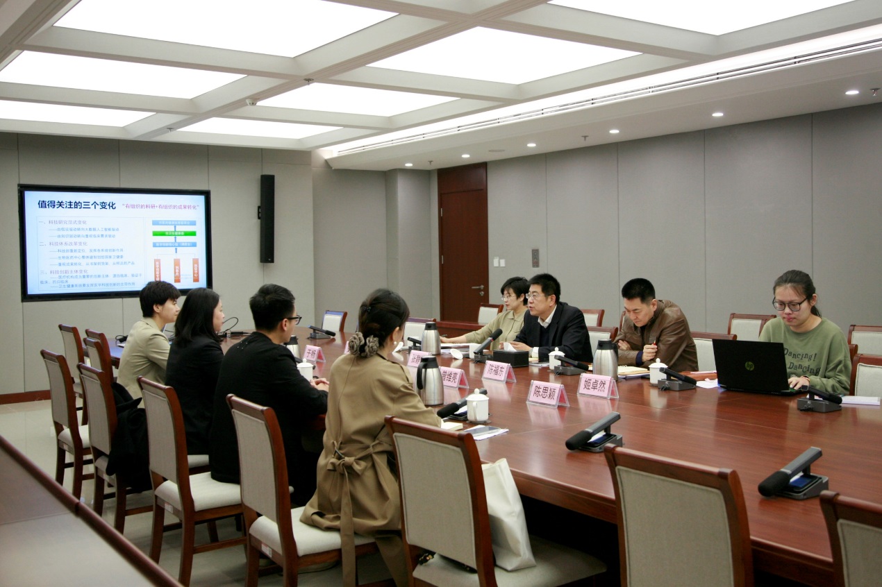 张静波主任对中信银行的到访表示欢迎,并介绍了中心设立背景、主要职责及未来重点工作。张静波主任表示,目前医学科技创新转化已经从重视知识驱动逐步转向为重视临床需求驱动,需要发挥各系统的创新作用。近年来,国家通过政策扶持、培养人才、科技投入、知识产权保护等方式支持科技创新,为企业的创新发展创造了有利的条件。希望未来能设计更多的科创精品项目,支持科技创新活动,搭建合作交流平台,服务首都生物医药产业发展,加速构建首都医学创新转化生态圈。