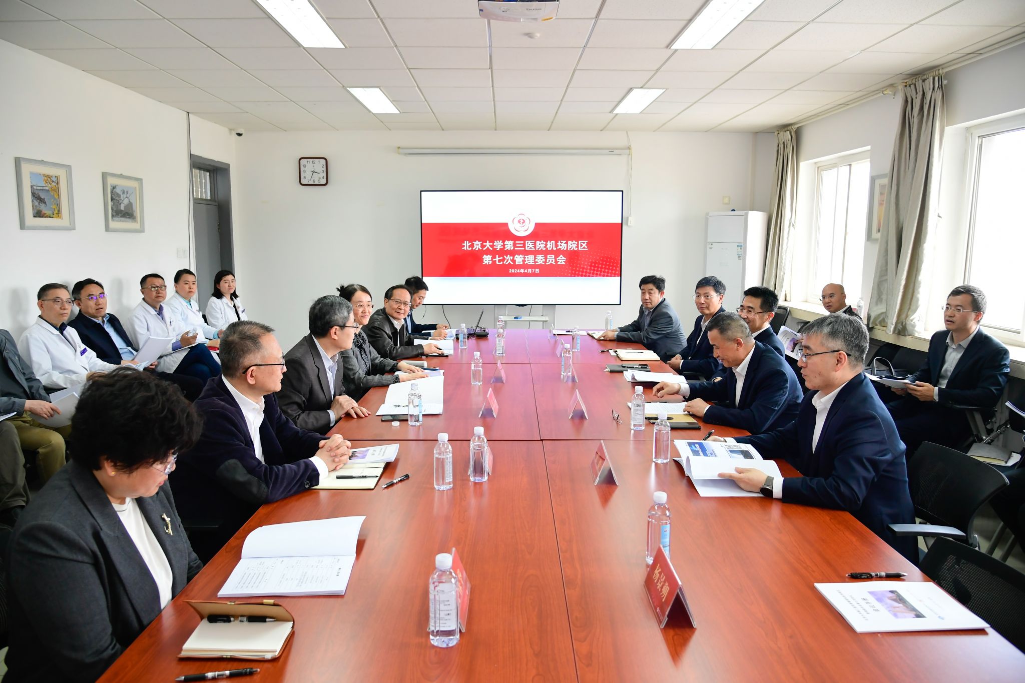 春暖花开,惠风和畅,2024年4月7日,为总结北京大学第三医院首都国际机场院区阶段性工作,助力高质量发展,北京大学第三医院与首都机场集团有限公司在机场院区举行北京大学第三医院机场院区管理委员会第七次会议。首都机场集团工会主席阎欣、天津滨海国际机场有限公司总经理张毅、首都机场集团经营管理部总经理曹喆懿,北京大学第三医院院长付卫、副院长沈宁、宋纯理等管委会委员出席会议。