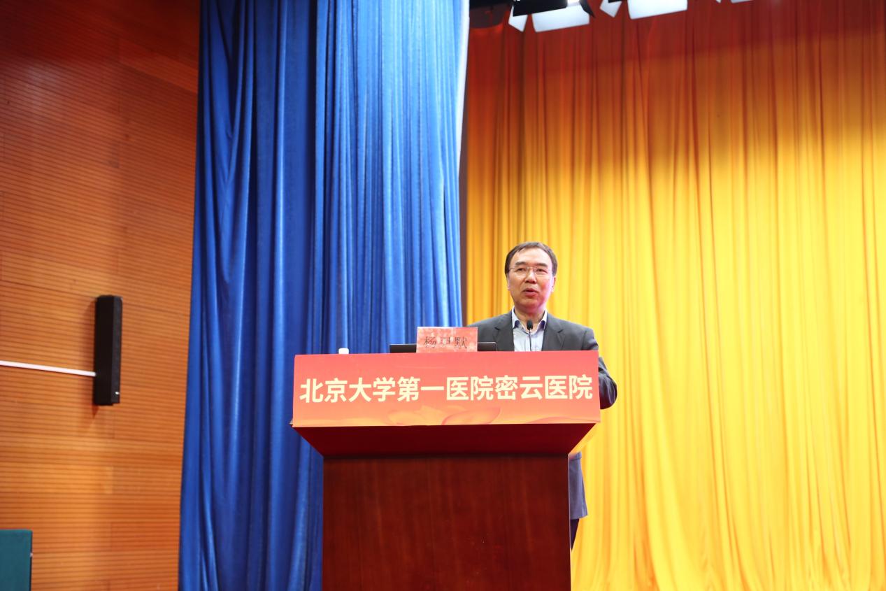 他表示,未来三年要以文化建设促学科发展,以学科建设引领推动高质量发展,以高质量管理促医教研全面提升。在中长期发展规划中要打造“1+1+19+N”(北大医院+密云医院+社区+医生)的密云发展模式,做到常见疾病不出区,小慢疾病联社区;急危重症能救治,疑难少见也能识;前沿技术有探索,医学研究有创新;临床教育成基地,北大医学入院区。真正达到多元深度融合,全面促进医院高质量发展。