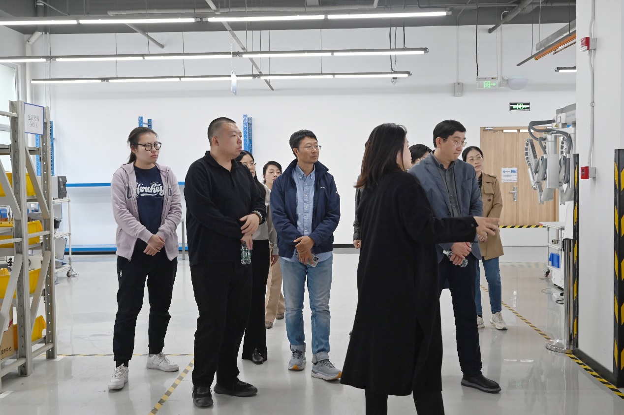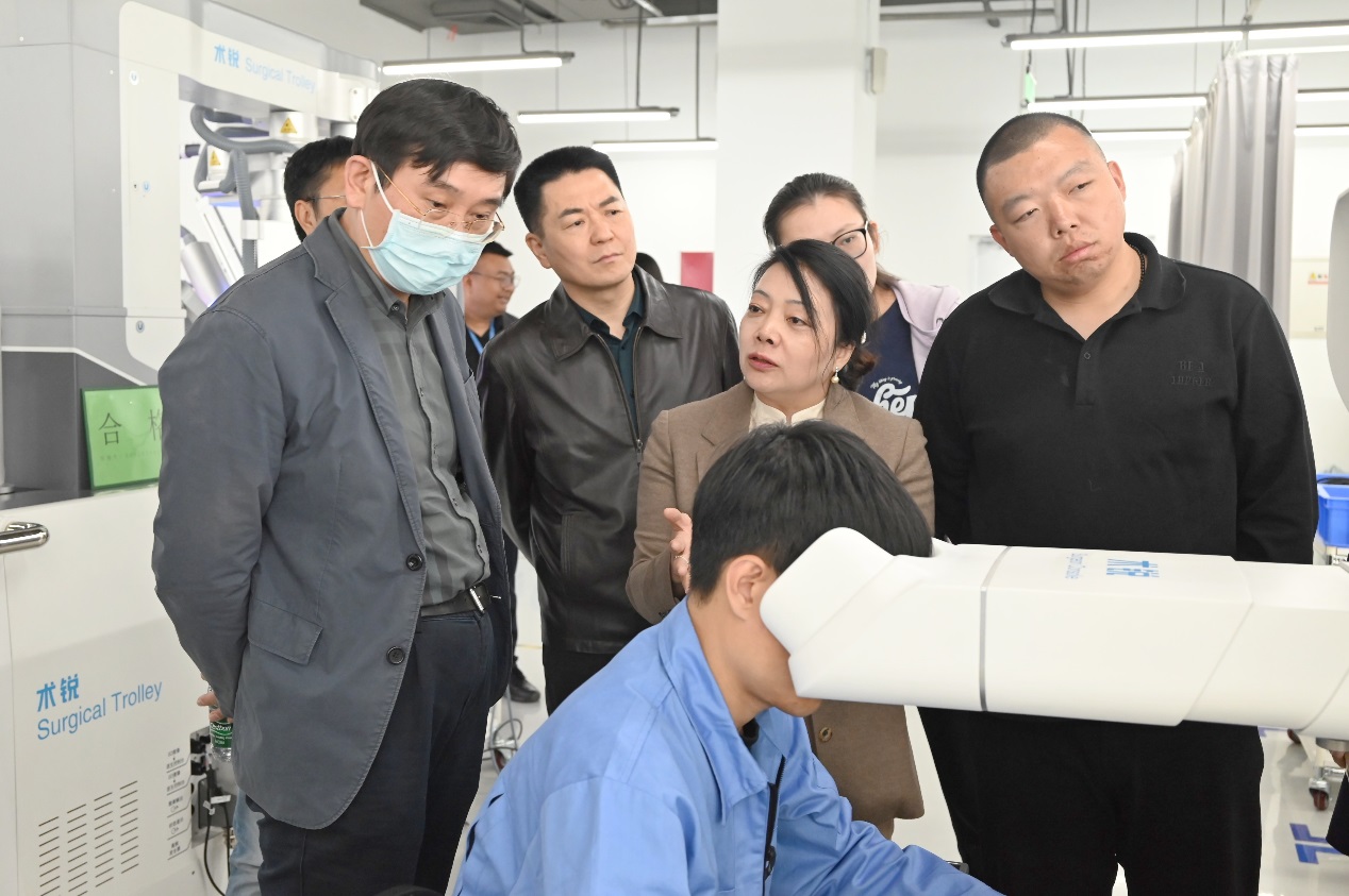 一行人来到术锐展厅和机器人生产车间,在术锐副总经理胡慧慧的带领下,参观术锐自主研发的单孔腔镜手术机器人全线生产过程,包括模具制作、核心软件装配、物料包装、系统检验等,近距离感受机器人的核心生产技术。
