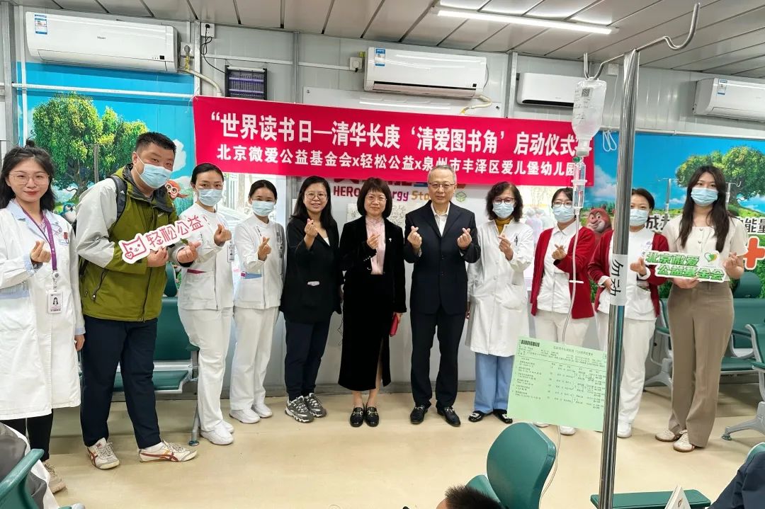 北京微爱公益基金会执行理事长、轻松集团首席战略官王政,基金会秘书长马崙,副秘书长刘爽,清华大学附属北京清华长庚医院党委副书记兼纪委书记王克霞,儿科主任徐樨巍,护理部副主任吕茵茵,社会服务部副部长张蕾,儿科医护团队、医务社工,部分患儿家属出席启动仪式,共同见证北京微爱公益基金会的图书捐赠,为患儿及家庭带来精神慰藉,鼓励他们勇敢对抗病魔,早日康复。