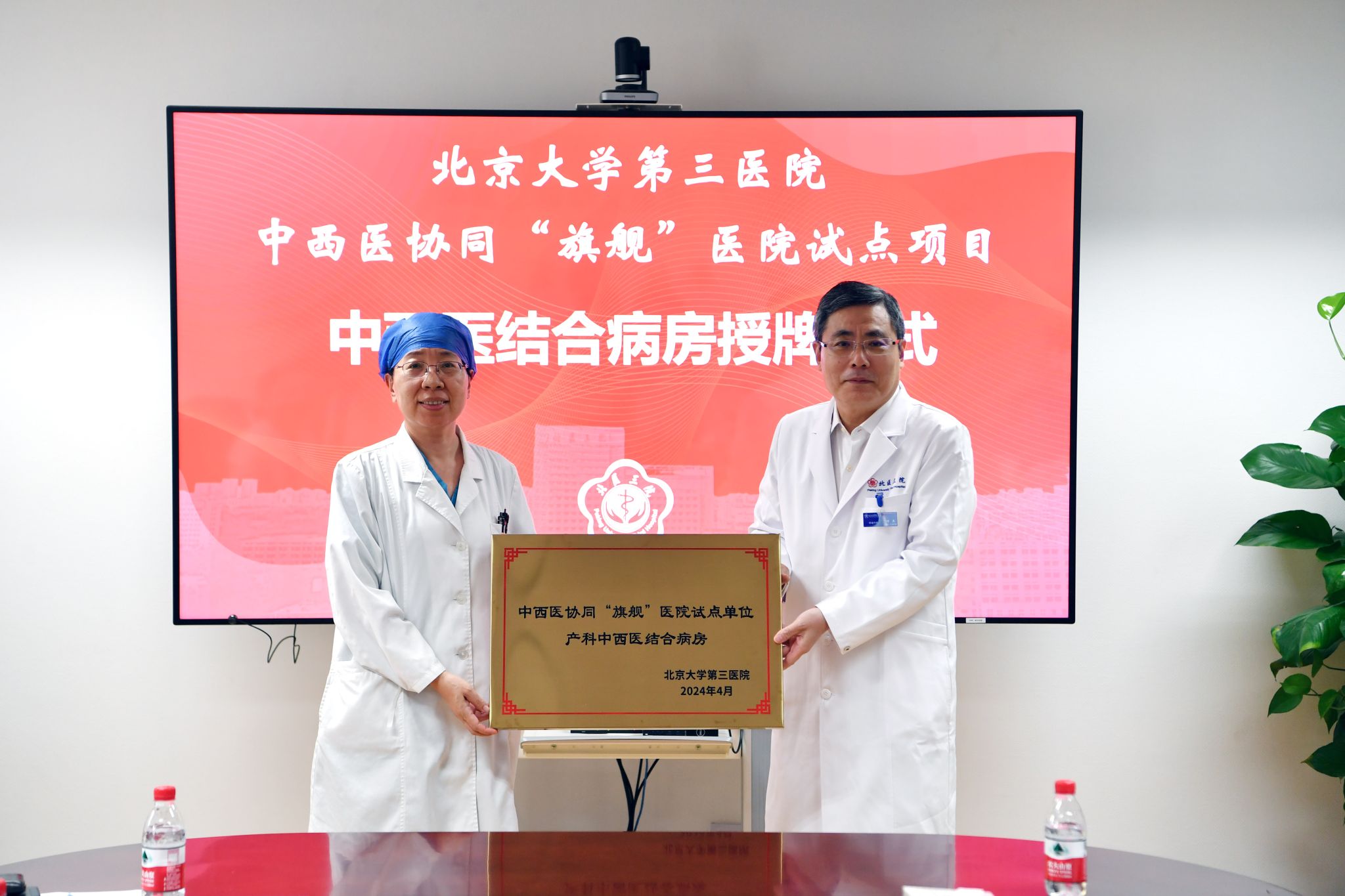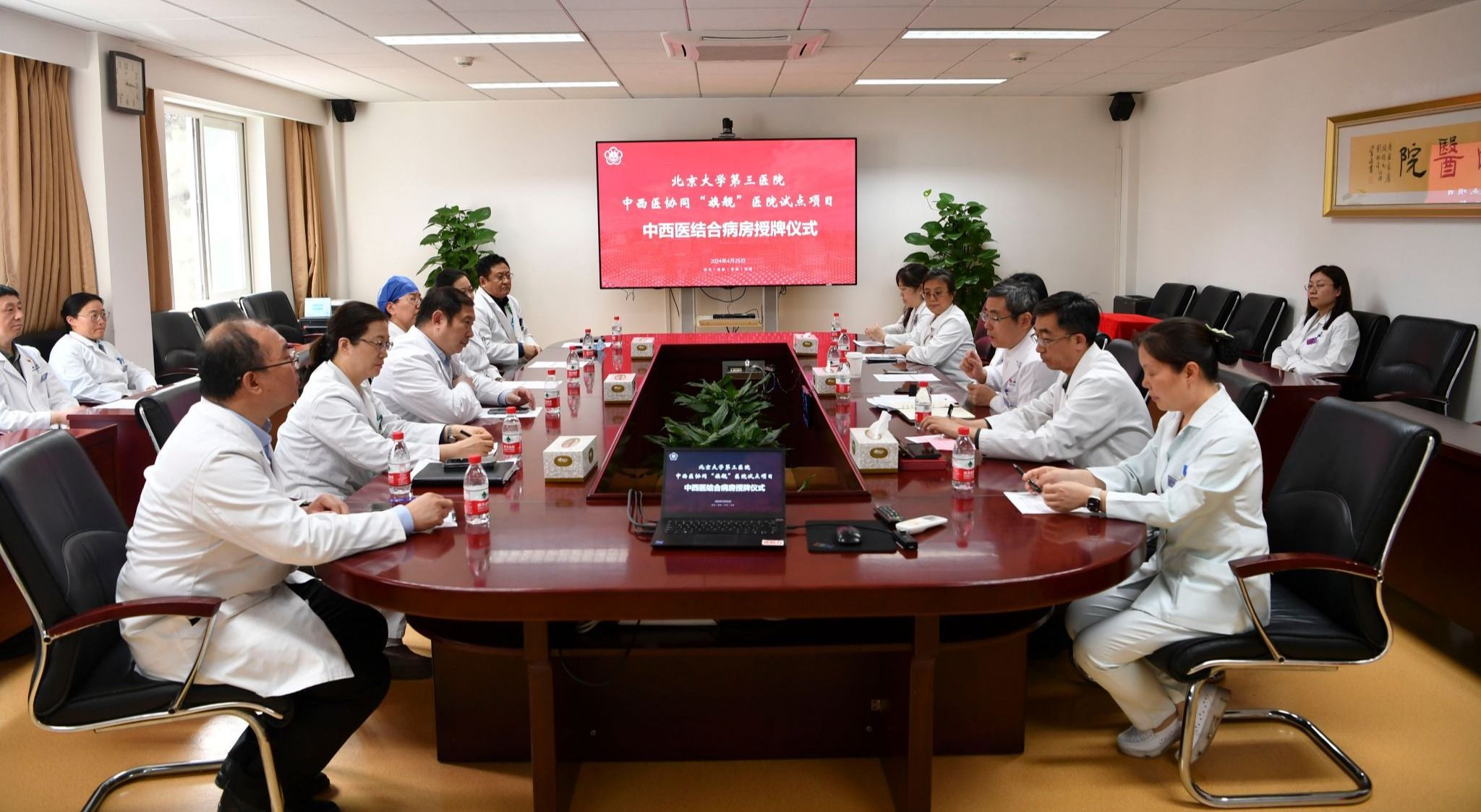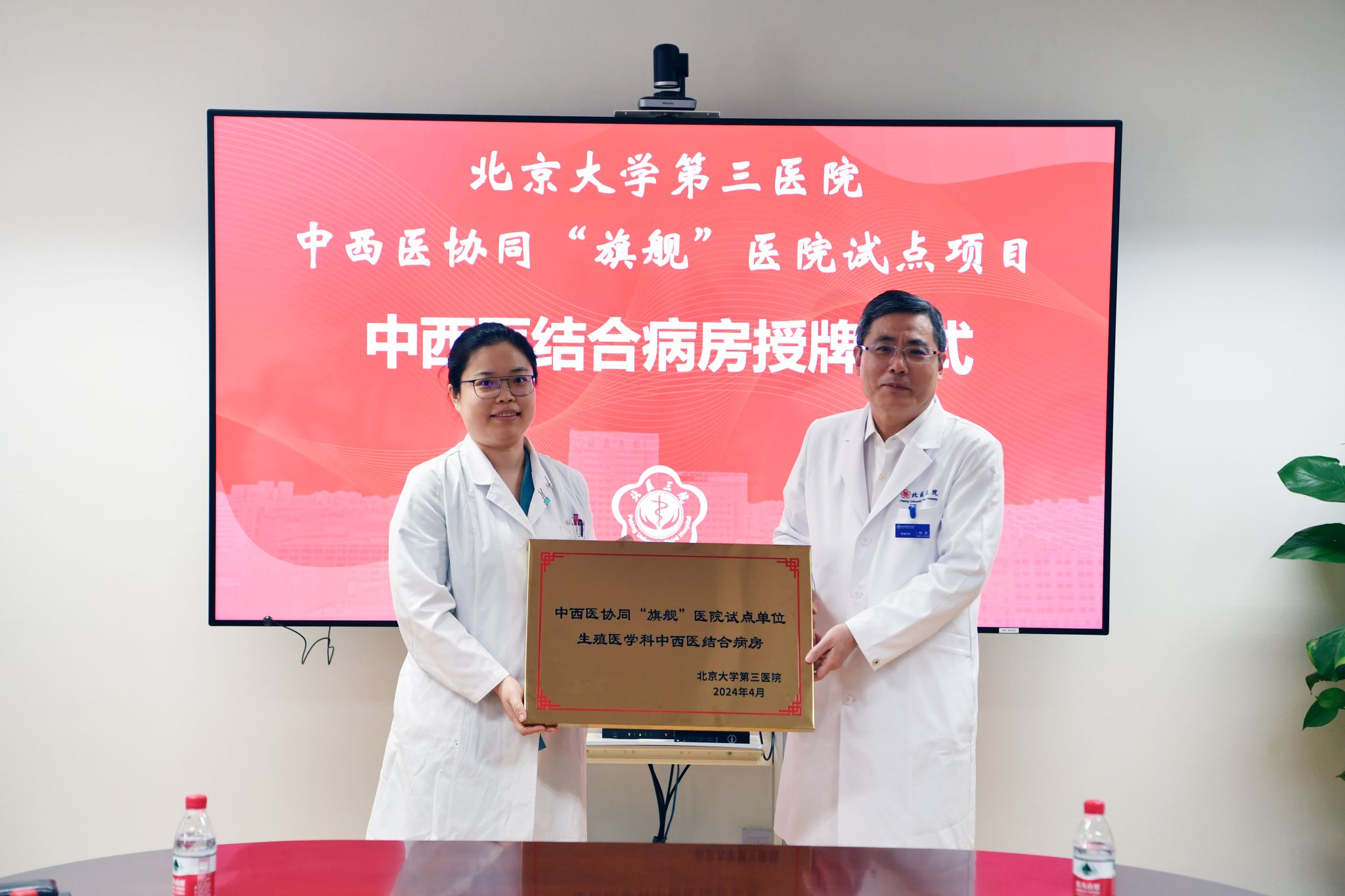 2024年4月25日下午,北京大学第三医院举行中西医结合病房授牌仪式。院长付卫、副院长李蓉,相关临床科室、职能处室负责人出席仪式。中西医结合病房的正式授牌,标志着北京大学第三医院在中西医结合领域迈出了坚实的一步,具有里程碑意义。授牌仪式由医务处处长胥雪冬主持。
