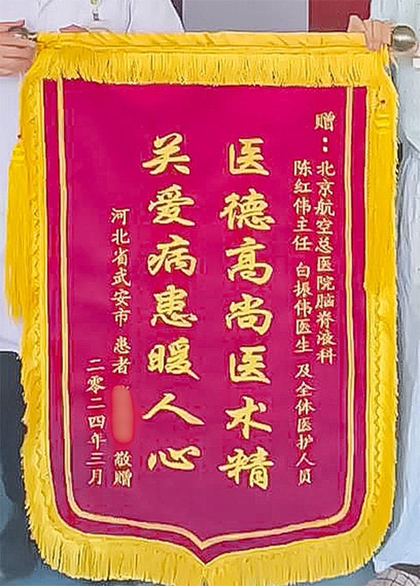 “虽然治疗颇为棘手,还曾出现类肢体抖动、言语缓慢、行动迟缓等似帕金森的症状,但是经过精心治疗这些症状也顺利缓解。”陈红伟说。出院前,张先生及家属特意送上锦旗,对陈红伟主任及神经外五科专家团队的精心治疗和关心照顾表示感谢。目前,张先生病情已明显好转,复查头部影像提示脑室正常,顺利出院,开启正常新生活。