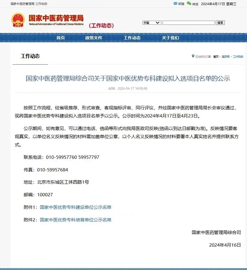 2024年政府工作报告强调:促进中医药传承创新,加强中医优势专科建设。国家中医优势专科建设项目,是国家中医药管理局贯彻落实《中共中央国务院关于促进中医药传承创新发展的意见》和《“十四五”中医药发展规划》有关要求,于2023年6月起在全国范围内启动了严格的遴选工作,旨在遴选出一批中医药特色优势突出,中医临床诊疗水平、综合服务能力、疑难危重病症诊疗能力在本专业居于领先地位,辐射带动能力强的专科。从而进一步完善中医药体制机制、积极建设优质高效中医药服务体系、为百姓提供更方便更优质的中医医疗服务。