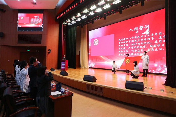 最后,与会人员全体起立,面向团旗,重温入团誓词。大会在中国共产主义青年团团歌《光荣啊,中国共青团》中闭幕。