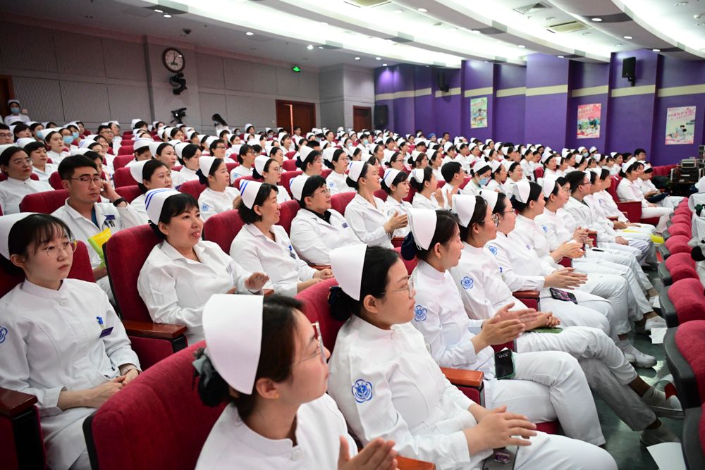表彰结束后,金昌晓书记讲话。金昌晓书记首先代表医院党政班子向所有护理工作人员致以节日的问候。在总结医院过去一年在公立医院高质量发展道路上取得的成绩后,对护士们作出的贡献给予了高度肯定,并表示“三院护理团队是一支高素质、高水平,团结向上、创新有为的团队,是一支充满活力、阳光奋进的团队,是一支社会放心、患者满意的团队!”北京大学第三医院护理团队根据2023年国家卫健委颁布的《进一步改善护理服务行动计划(2023-2025年)》,开展了以“强基础、提质量、促发展”为主题的进一步改善护理服务行动,在服务流程改进、护理质量提升、护理专业影响力提升、护理人文建设等多个方面加强建设,共同推动护理事业高质量发展。金昌晓书记强调,2024年是新中国成立75周年,是国家“十四五”规划的关键一年。新时代新征程对护理事业提出了更高的要求。希望护士同志们深刻践行“专业、温馨、尊重、成长”的护理文化,将个人的发展融入到医院建设中,在平凡的岗位上创造出不平凡的业绩,共同推动北京大学第三医院高质量发展,为人类的健康卫生事业贡献更多的智慧与力量!