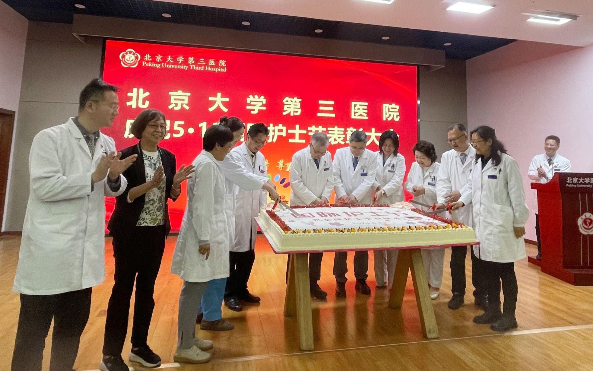 北京大学第三医院党委书记金昌晓,院长、党委副书记付卫,党委副书记刘东明、李树强、杨莉,副院长沈宁、宋纯理、李蓉、唐熠达,总会计师李春,北京大学第三医院护理部前任主任张洪君,各职能处室、临床科室负责人和代表出席,受表彰的护士及各科室护士代表参加会议。庆祝大会由李蓉副院长主持。