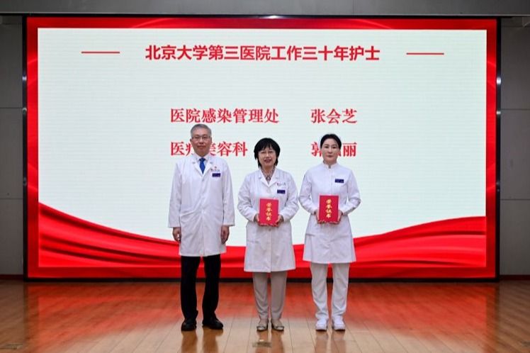 随后,李蓉副院长宣读了在北京大学医学部、北京大学第三医院获奖的优秀个人和集体名单,与会领导为获奖人员颁发荣誉证书。