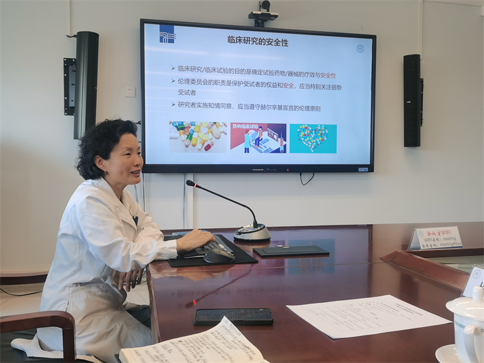 肖淑萍作为会议主持,在开场中介绍了授课老师以及参会嘉宾,并表示希望通过此次培训能够进一步加强研究者对受试者的保护意识,规范化开展临床研究。