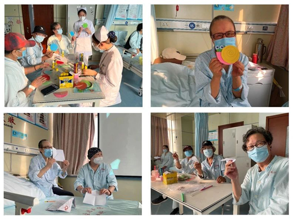 减压小组活动主要为组织患者在病区开展的各种生动有趣的绘画、手工制作等活动,有效帮助患者减压,更好面对疾病并积极配合治疗。乳腺外科开展过涂鸦春天、一纸千金等趣味绘画活动;趣味蜗牛、减压飞机、小小徽章等手工制作活动。