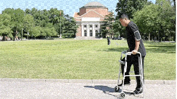 2022年11月,吴先生经过北京清华长庚医院多学科的联合评估,成功入组,成为第二名参加人工脊髓临床项目的患者。在经过了两个月的预先康复训练后,2023年1月,王贵怀与陆洋医师对其完成了人工脊髓系统的植入手术。术后3天,吴先生状态好转后,便开始进行简单的活动和康复训练,涵盖了上肢肌肉力量训练、核心肌群训练、以及下肢肌肉拉伸训练。在做好了前期准备后,2023年2月14日,实验室团队首次进行刺激器开机,并于当天实现辅助下的步行功能恢复;2023年3月31日,经过1个月的训练,吴先生实现了重新站立;2023年4月28日,吴先生顺利脱离天轨首次进行独自行走,尽管训练的过程饱含艰辛和汗水,但治疗效果也格外显著。