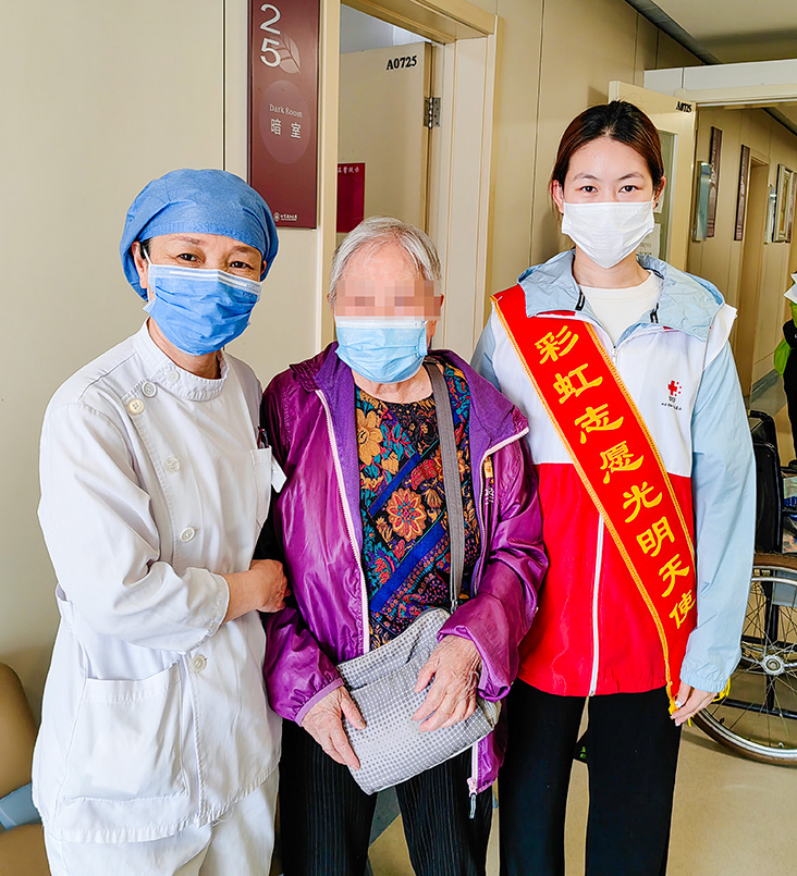 经过志愿者的陪伴与协助,奶奶顺利完成各项检查。诊治结束后,她对朝阳医院眼科医护人员及志愿者的热心帮助深表感谢,并对眼科门诊的陪诊服务及“光明天使”志愿项目给予高度赞扬。