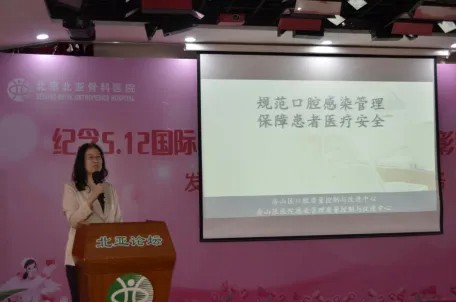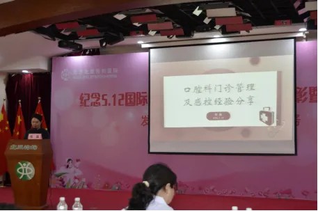 张淼护士长以《口腔科门诊管理及感控经验分享》为题,深入浅出地将口腔门诊的人员配置、人文建设、建筑布局和人员安排等方面结合,从为传染病患者服务的角度对感控工作进行了剖析;并从科室管理的实际出发将佑安口腔的管理理念、感控工作的开展情况进行了详尽地展示。