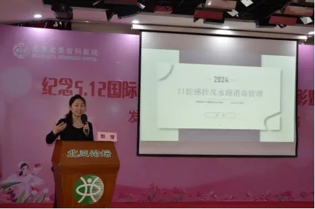 本次培训主题为“规范口腔感染管理,保障患者医疗安全”。郭莹副主任以《口腔感染控制及水路消毒管理》为题,从欧美国家牙科诊所出现的感控失败案例为引,将国际、国内的口腔感控相关指导标准指南进行了梳理与解读,并从临床的角度阐述了医院感控管理工作实施方向和注意事项,结合佑安口腔的经验进行了分享。