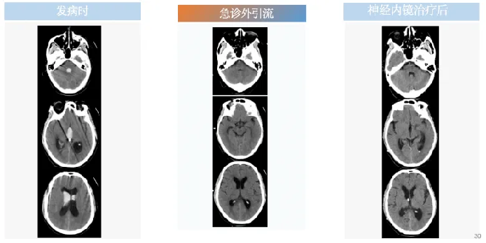 经过充分准备,肖庆为患者行神经内镜检查术+脑脓肿清除术+脑室腹壁长程引流术+脑脊液置换术+气管切开术。术中清除多处陈旧积血块及絮状物炎性改变;术后持续引流,复查头颅CT检查脑室内积血消失,脑室扩张形态减轻,脑水肿缓解;同时,纠正低蛋白血症、肝功能异常,加强肺部感染治疗,抗炎改善脓毒血症,纠正炎性指标,肠内外营养纠正营养不良,纠正电解质紊乱……