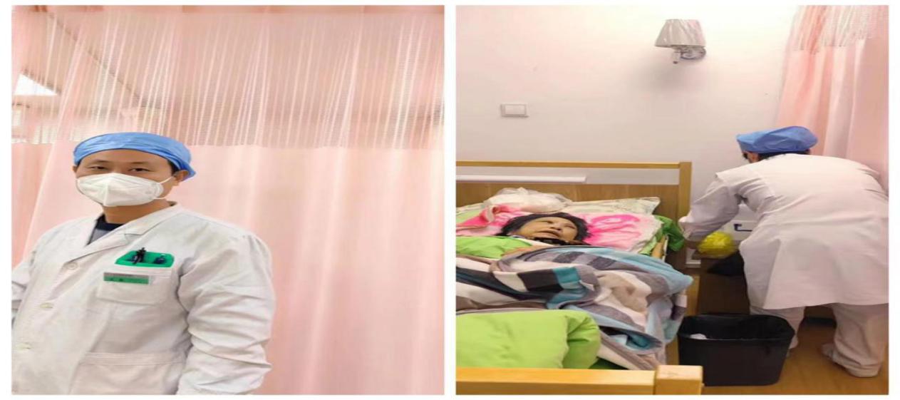 关聚医生和护士周玉东是融景城卫生服务站的医护人员,因胡奶奶身患脑梗赛等慢性病,长期卧床,尿潴留,每个月均需要上门更换导尿管,周护士每次准备好所需的医疗物品,于5月8日上午九点来到了乐龄养老驿站。